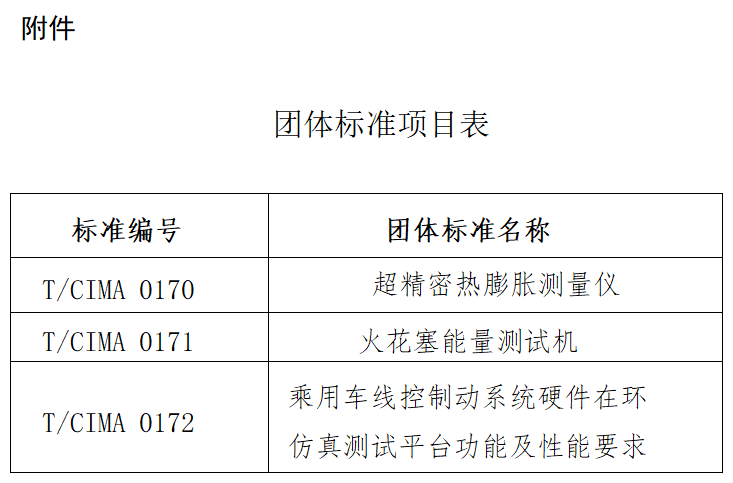 近日,根據《中國儀器儀表行業協會團體標準管理辦法》的規定,經審查,對由中國儀器儀表行業協會試驗儀器分會提出的《超精密熱膨脹測量儀》等3項團體標準進行立項(標準編號和名稱見下表),特此公告。