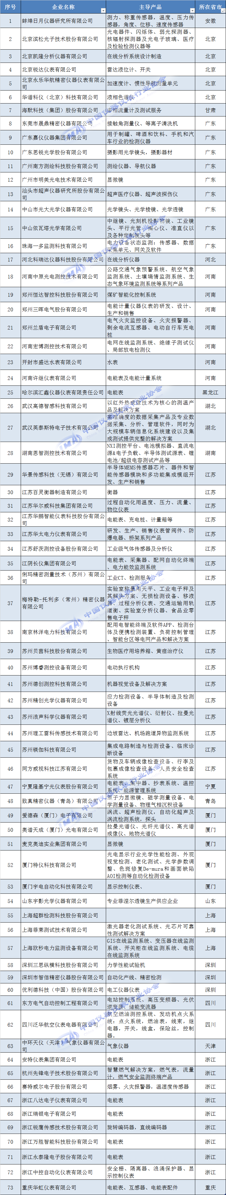 入選第六批專精特新小巨人企業公示名單中的儀器儀表行業企業: