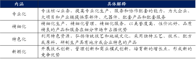 “專精特新”中小企業(yè)專注于產(chǎn)業(yè)鏈上某個環(huán)節(jié),聚焦細分市場,聚焦核心主業(yè),更強調(diào)專業(yè)化程度,部分優(yōu)秀企業(yè)通過數(shù)十年對已有產(chǎn)業(yè)技術(shù)的綜合和挖潛,在特定產(chǎn)品上做到了極強的專業(yè)度和較高的市場占有率,成為產(chǎn)業(yè)鏈上大企業(yè)不可或缺的配套供應(yīng)商,對于補齊供應(yīng)鏈、穩(wěn)定產(chǎn)業(yè)經(jīng)濟結(jié)構(gòu)具有重要作用。