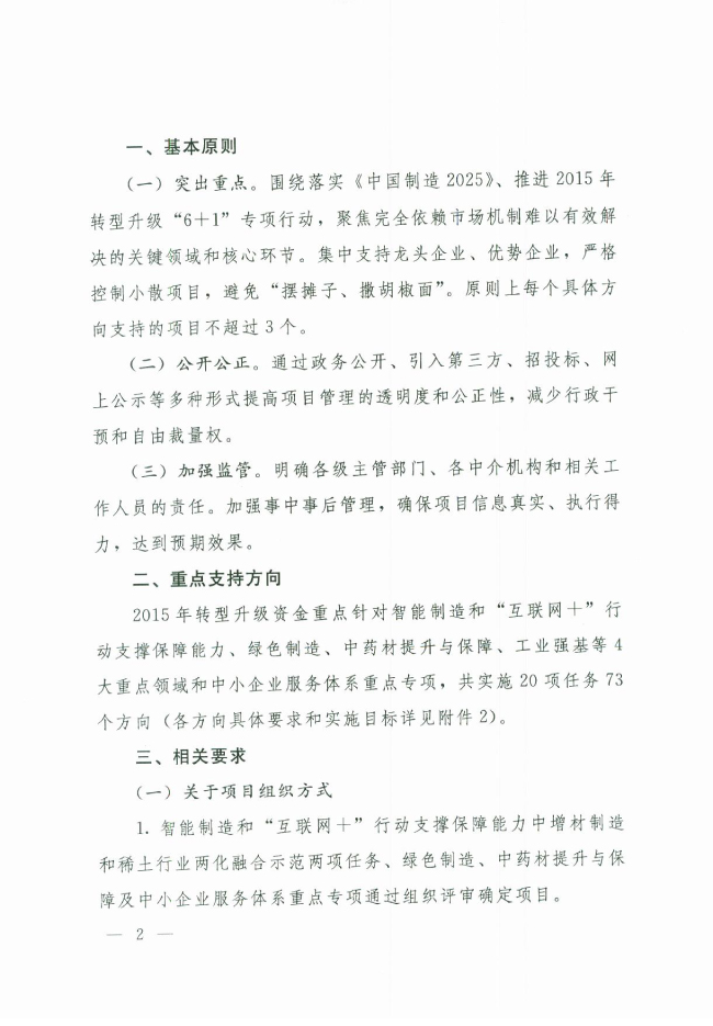 7月27日,工信部發布關于2015年工業轉型升級重點項目指南的通知。根據通知,2015年轉型升級資金重點針對智能制造和“互聯網 ”行動支撐保障能力、綠色制造、中藥材提升與保障、工業強基等4大重點領域和中小企業服務體系重點專項,共實施20項任務73個方向。
