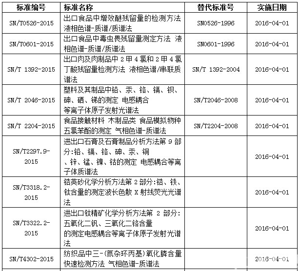 9月2日,質檢總局發布關于2015年第三批103項出入境檢驗檢疫行業標準的通知,其中20余項涉及色譜、質譜及光譜儀器檢測方法,被代替標準自本批標準實施之日起廢止。
