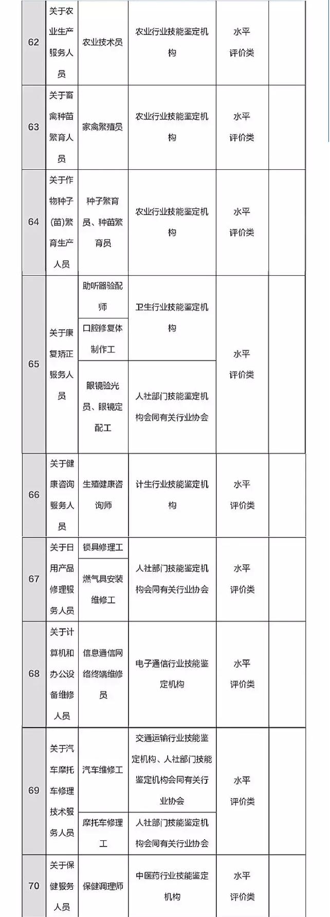 國家職業資格目錄清單(151項)