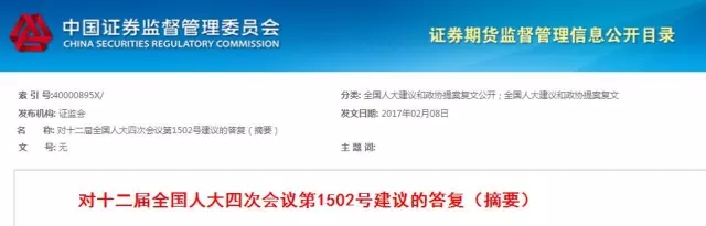 2月8日中國證券監督管理委員會發布了《對十二屆全國人大四次會議第1502號建議的答復(摘要)》,證監會在對十二屆全國人大四次會議第1502號建議的答復中提到,證監會一直高度重視中小企業融資難的問題,采取多種措施拓寬融資渠道,降低融資成本。節能環保科技型中小企業可以充分利用資本市場發展壯大。另外,證監會將多措并舉,進一步促進私募基金更好支持初創型、科技型中小微企業發展;將繼續積極支持包括節能環保企業在內的綠色發行人利用公司債券市場融資發展。下一步將繼續支持符合國家產業政策和發行上市條件的節能環保企業上市融資,鼓勵節能環保企業利用資本市場做大做強。