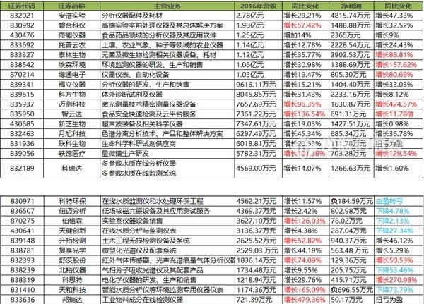 2016年度營(yíng)收增長(zhǎng)的新三板儀器公司