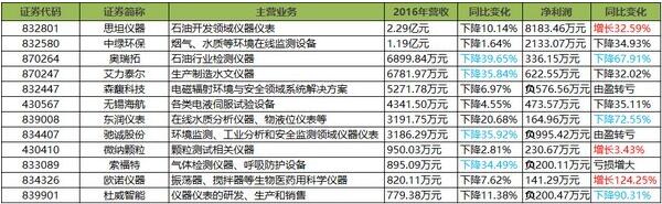 2016年度營(yíng)收下降的新三板儀器公司