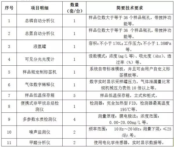 總磷自動(dòng)分析儀、總氮自動(dòng)分析儀、液氬氣罐、可見分光光度計(jì)、樣品瓶定制標(biāo)簽機(jī)、氣體數(shù)字稀釋儀、樣品低溫保存箱自合同簽訂之日起6個(gè)月內(nèi)完成供貨、現(xiàn)場安裝調(diào)試和驗(yàn)收工作;便攜式非甲烷總烴檢測儀、多參數(shù)水質(zhì)檢測儀、噪聲監(jiān)測儀、甲醛分析儀自合同簽訂之日起3個(gè)月內(nèi)完成供貨、現(xiàn)場安裝調(diào)試和驗(yàn)收工作。