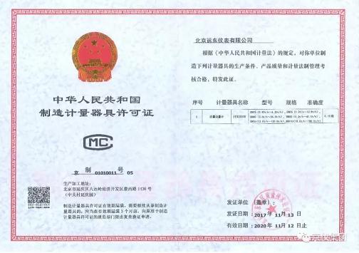 11月15日,北京遠東儀表有限公司取得質量流量計制造計量器具生產許可證。