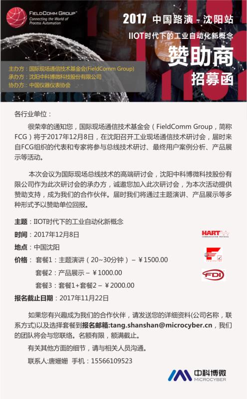 “IIOT時(shí)代下的工業(yè)自動化新概念”2017 FCG中國路演–沈陽站會議通知
