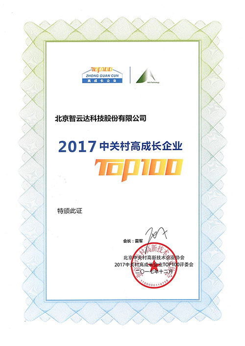 在北京市科委、中關(guān)村管委會、海淀園管委會的指導與支持下,由北京中關(guān)村高新技術(shù)企業(yè)協(xié)會主辦“2017中關(guān)村高成長企業(yè)T0P100”評選活動,北京智云達科技股份有限公司順利通過評審,成為2017中關(guān)村高成長企業(yè)TOP100評選上榜企業(yè)。
