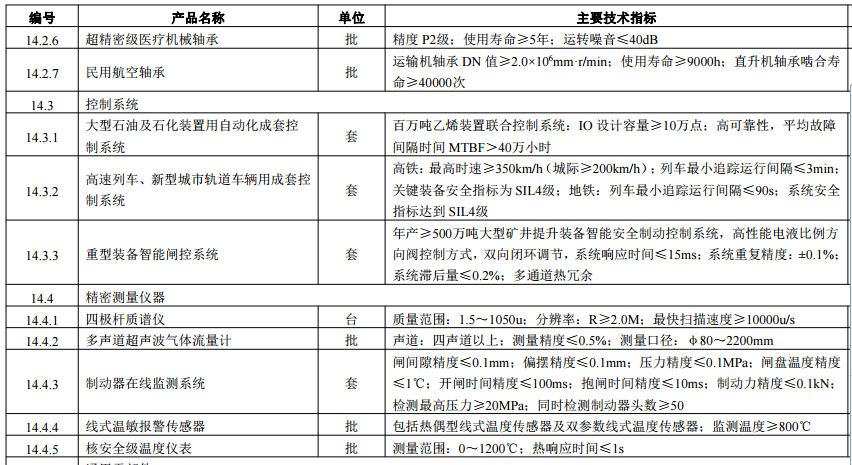 工信部2018年1月26日印發《關于印發<首臺(套)重大技術裝備推廣應用指導目錄(2017年版)>的通告》(工信部裝函[2018]47號)。目錄包括清潔高效發電裝備,超、特高壓輸變電裝備,大型石油、石化及煤化工成套裝備,大型冶金、礦山裝備及港口機械,軌道交通裝備,大型環保及資源綜合利用裝備,大型施工機械,新型輕工機械,民用航空裝備,高技術傳播及還海洋工程裝備,成形加工設備,新型、大馬力農業裝備,電子及醫療專用裝備,重大技術裝備關鍵配套基礎件等共十四大類。
