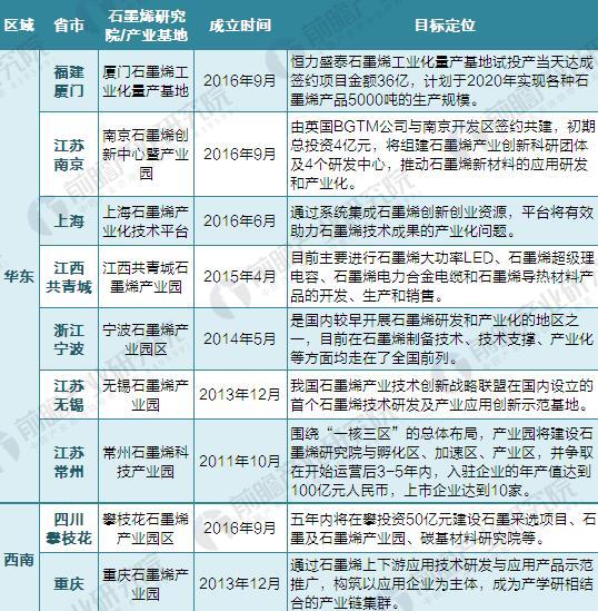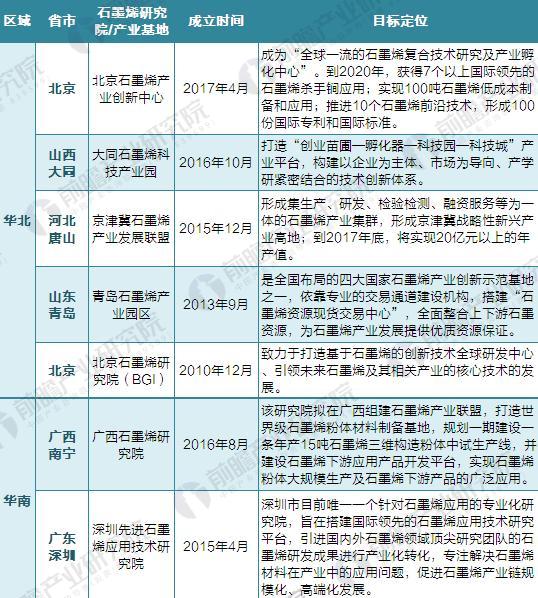 根據前瞻產業研究院《2018-2023年中國石墨烯行業深度市場調研與投資戰略規劃分析報告》不完成統計,截至2018年3月全國各地有21家在建或已建成的石墨烯研究院或產業基地,包括常州、無錫、重慶、北京、青島等先發城市,地方政府的相關財政資金也有望在未來幾年達到千億規模。