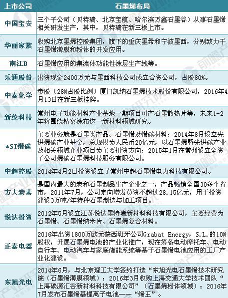 2018年石墨烯企業布局匯總