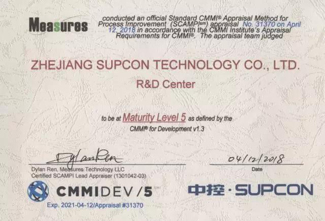 這是自2014年10月首次通過CMMI 5級評估后,中控再次獲得的實錘般的肯定。這就意味著中控的研發質量管理及過程改善能力一直保持國際頂尖標準水平,可以為國內外用戶提供更成熟的行業解決方案和更高質量的服務,這也給我們的用戶吃下了一顆“放心丸”。
