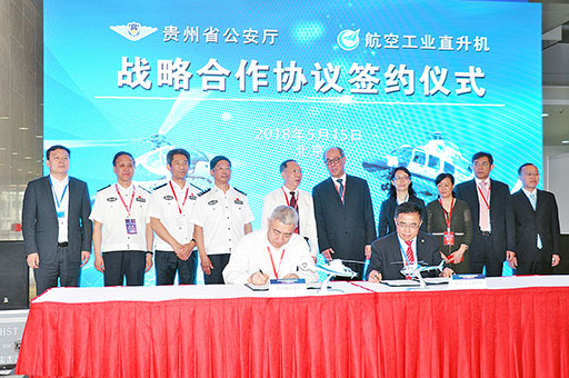 5月15日,第九屆中國國際警用裝備博覽會開幕之際,航空工業與貴州省公安廳簽署戰略合作協議,公安部黨委委員、部長助理王儉,貴州省公安廳常務副廳長王瑛瑋,航空工業總工程師汪亞衛出席簽約儀式。