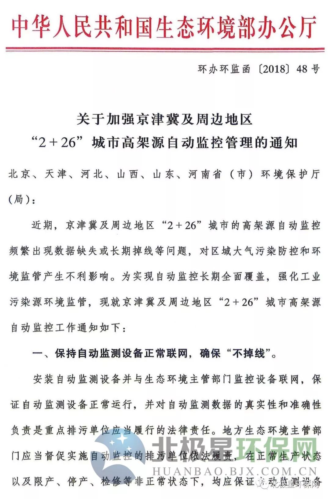 北極星環(huán)保網(wǎng)獲悉,生態(tài)環(huán)境部印發(fā)《關(guān)于加強(qiáng)京津冀及周邊地區(qū)“2+26”城市高架源自動(dòng)監(jiān)控管理的通知》。通知稱,近期京津冀及周邊地區(qū)“2+26”城市的高架源自動(dòng)監(jiān)控頻繁出現(xiàn)數(shù)據(jù)缺失或長(zhǎng)期掉線等問題,對(duì)區(qū)域大氣污染防控和環(huán)境監(jiān)管產(chǎn)生不利影響。