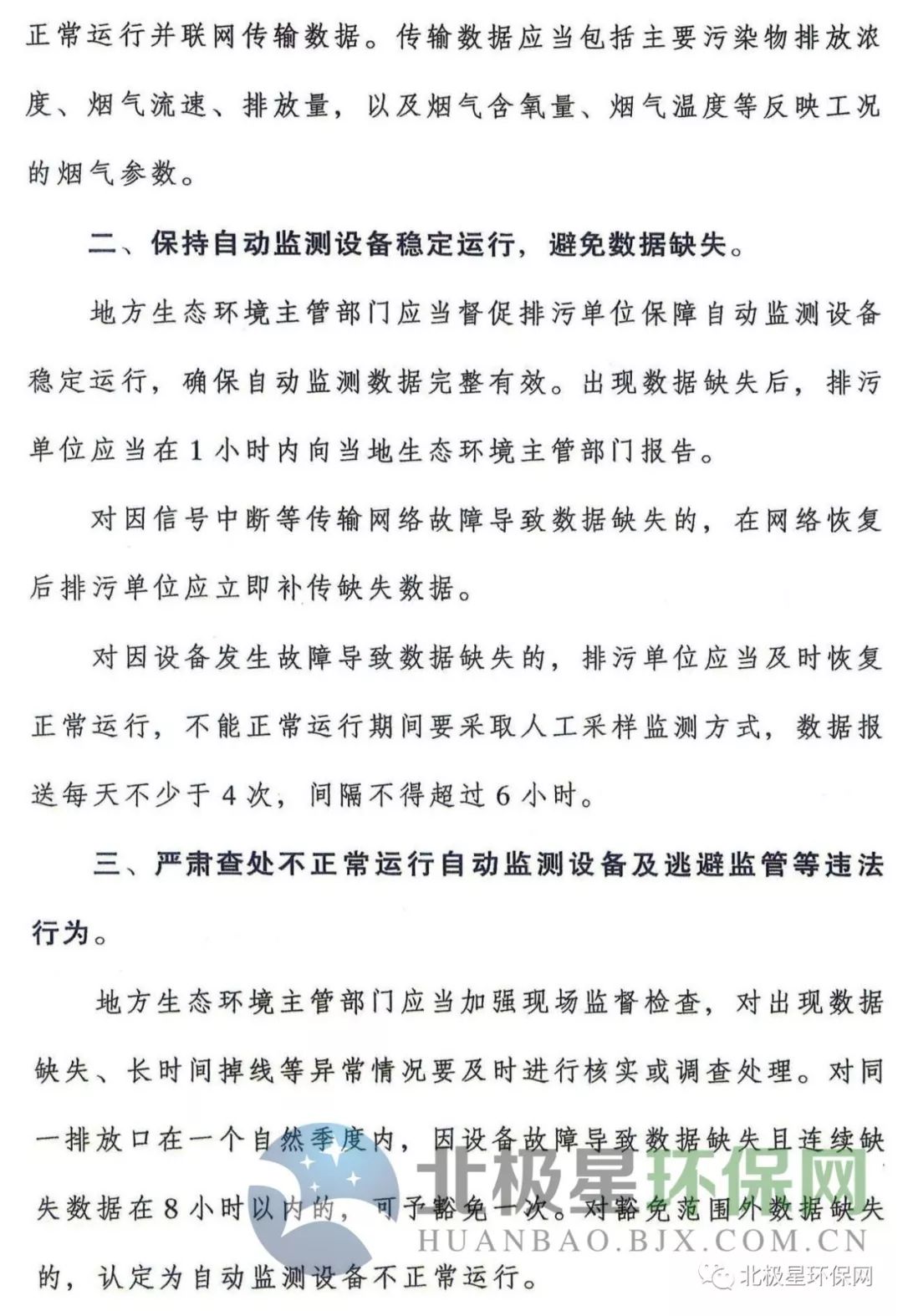 通知要求:在正常生產(chǎn)狀態(tài)以及限產(chǎn)、停產(chǎn)、檢修等非正常狀態(tài)下,均應(yīng)保證自動(dòng)監(jiān)控設(shè)備正常運(yùn)行并聯(lián)網(wǎng)傳輸數(shù)據(jù),確保“不掉線”。確保自動(dòng)監(jiān)控?cái)?shù)據(jù)完成有效。出現(xiàn)數(shù)據(jù)缺失后,排污單位應(yīng)當(dāng)在1個(gè)小時(shí)內(nèi)向當(dāng)?shù)厣鷳B(tài)環(huán)境部主管部門報(bào)告。