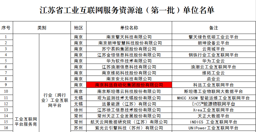 根據(jù)《關(guān)于組織構(gòu)建江蘇省工業(yè)互聯(lián)網(wǎng)服務(wù)資源池的通知》(蘇經(jīng)信企信〔2018〕223號(hào))精神,經(jīng)各地審核推薦、專家評(píng)審、實(shí)地考察等環(huán)節(jié),科遠(yuǎn)股份作為工業(yè)互聯(lián)網(wǎng)平臺(tái)服務(wù)商、工業(yè)互聯(lián)網(wǎng)解決方案服務(wù)商、數(shù)據(jù)采集服務(wù)商,入圍江蘇省工業(yè)互聯(lián)網(wǎng)服務(wù)資源池(第一批)。