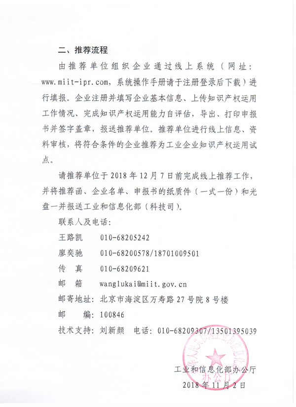 工信部辦公廳關于開展工業企業知識產權運用試點推薦工