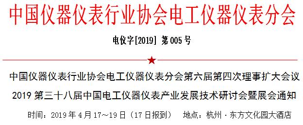 中國儀器儀表行業協會電工儀器儀表分會定于 2019 年4月17~19日在杭州東方文化園大酒店召開“2019 第三十八屆中國電工儀器儀表產業發展技術研討會暨展會”,同期召開“中國儀器儀表行業協會電工儀器儀表分會第六屆第四次理事擴大會議”、“中國儀器儀表行業協會團體標準系列會議”。