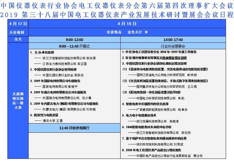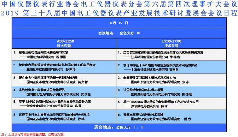 2、中國儀器儀表行業協會電工儀器儀表分會第六屆第四次理事(擴大)會議(18日下午):