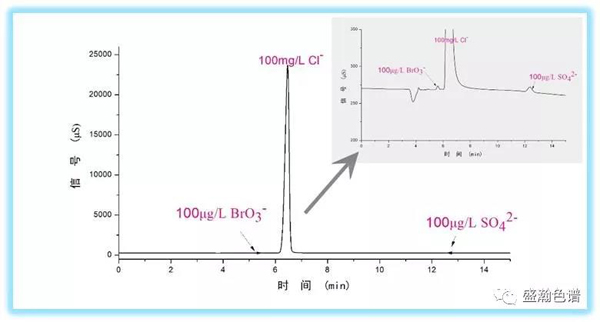 自動量程電導檢測器,根據樣品的不同濃度自動調整信號值的大小, 100ppm氯離子直接進樣,也不會出現平頭峰(超量程)。