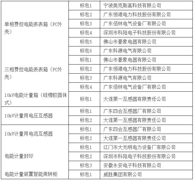 廣東電網有限責任公司2019年電能表、計量表箱、低壓集抄等營銷類設備框架招標(招標編號:0002200000043956)中標結果公布: