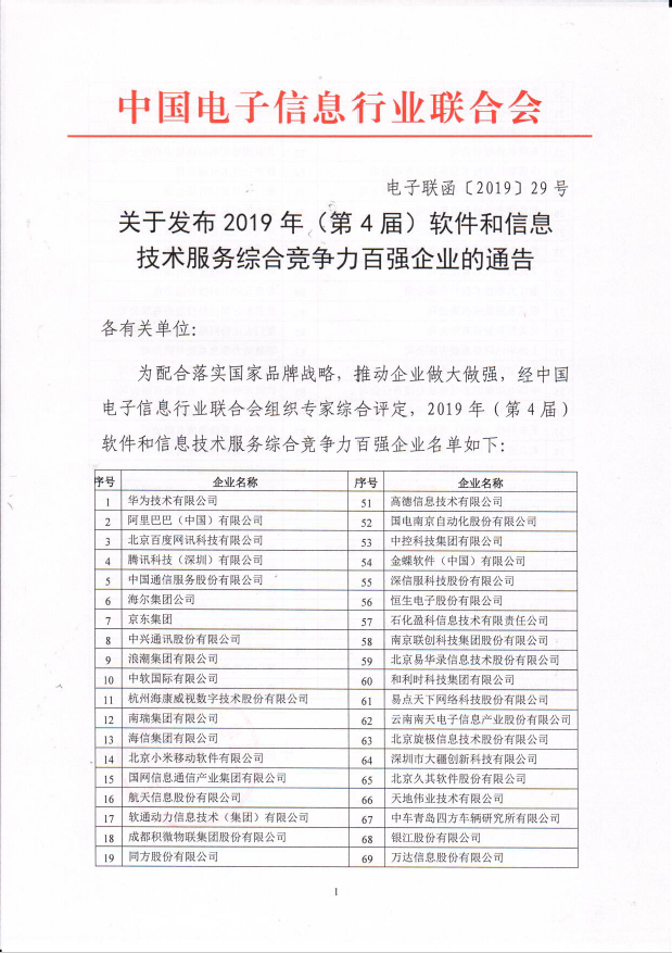 此次“2019年軟件和信息技術(shù)服務(wù)綜合競爭力百強(qiáng)企業(yè)”評選活動旨在深入貫徹落實黨的十九大精神,助力“數(shù)字中國”建設(shè),促進(jìn)軟件和信息技術(shù)服務(wù)企業(yè)綜合競爭力提升,專家組以企業(yè)的規(guī)模、效益及研發(fā)創(chuàng)新三個方面為主要依據(jù),輔以市場開拓能力、社會責(zé)任貢獻(xiàn)等進(jìn)行綜合評價。