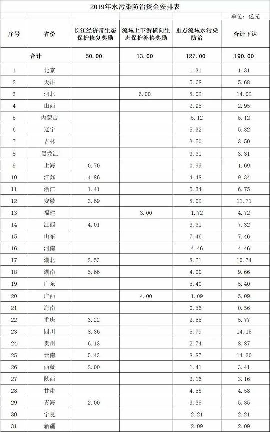 近日,財(cái)政部接連發(fā)布《財(cái)政部關(guān)于下達(dá)2019年度大氣污染防治資金預(yù)算的通知》、《財(cái)政部關(guān)于下達(dá)2019年度水污染防治資金預(yù)算的通知》、《財(cái)政部關(guān)于下達(dá)2019年土壤污染防治專項(xiàng)資金預(yù)算的通知》等,下達(dá)各省大氣、污水和土壤三項(xiàng)污染防治資金預(yù)算,合計(jì)490億元。