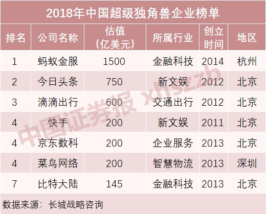 2019年5月,長城戰略咨詢發布的《2018年中國獨角獸企業研究報告》(以下簡稱《報告》)指出,2018年中國獨角獸數量首次突破200家,達到202家,總估值7441億美元,平均估值36.8億美元。