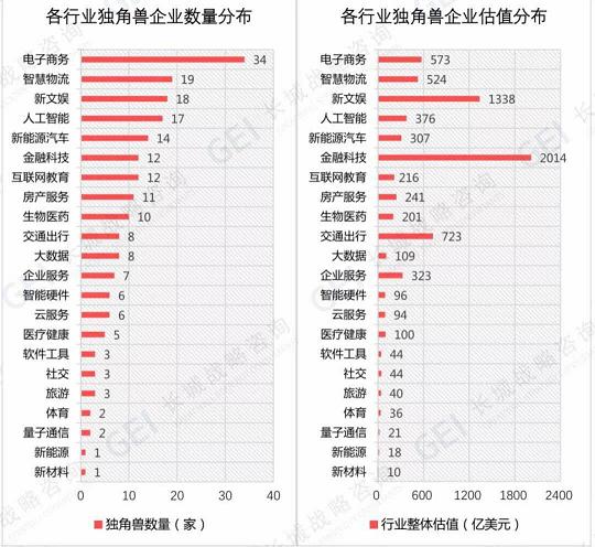 從行業來看,前沿科技獨角獸數量和比例顯著增加?!秷蟾妗凤@示,2018年中國獨角獸企業共分布于22個行業領域,電子商務、智慧物流、新文娛、人工智能、新能源與智能網聯汽車獨角獸數量分列前五。
