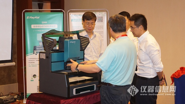在新品揭幕儀式中,由中國農業大學潘燦平教授和睿科集團總經理林志杰一起為睿科QS60全自動QuEChERS凈化儀揭幕。
