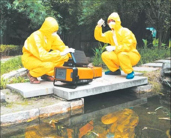 →在浙江省杭州市濱江區(qū),水質監(jiān)測人員通過Mars-400設備精準監(jiān)測水質各項指標,