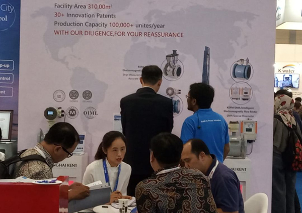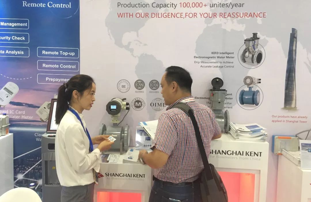 展會期間,展臺上展示的包括電磁水表、電磁流量計在內的眾多國內熱銷產品,吸引了眾多外賓駐足交流。參展人員耐心就電磁水表和電磁流量計的工作原理和性能給客戶進行講解,直觀地展示了上海肯特產品的特點與優勢,更是給用戶留下深刻印象。