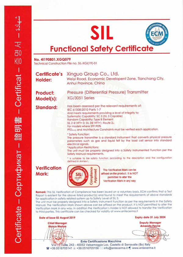 鑫國磁翻板液位計、壓力變送器喜獲SIL安全認證