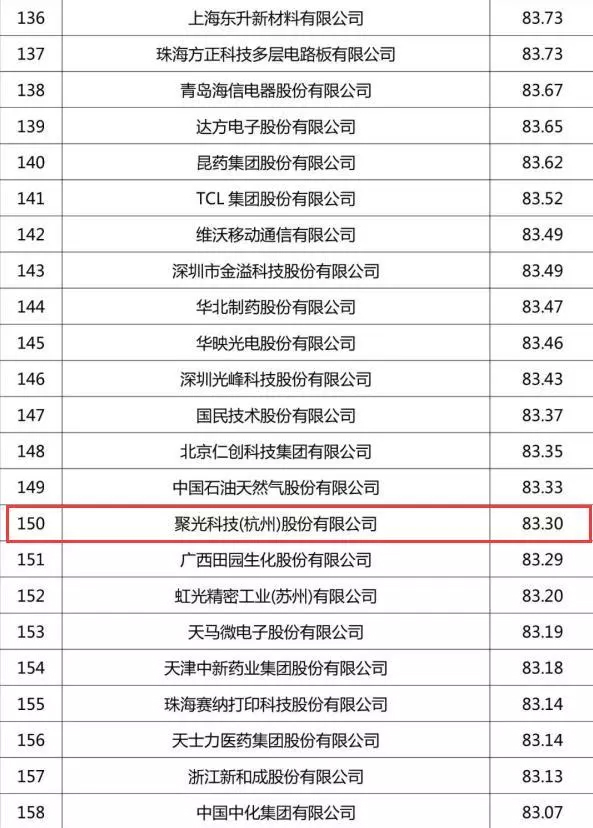 榜單顯示,中國企業專利500強第一名為:華為技術有限公司。杭州濱江高新區入榜的企業包括網易(杭州)網絡有限公司、新華三技術有限公司、阿里巴巴(中國)網絡技術有限公司、浙江大華技術股份有限公司、浙江宇視科技有限公司、聚光科技等11家。
