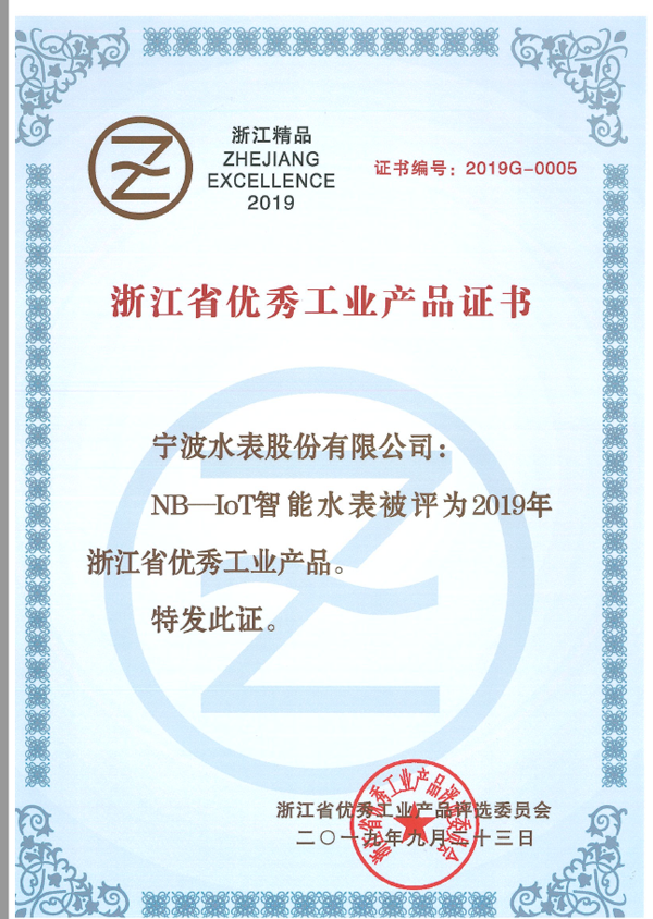 2019年10月31日,由浙江省企業聯合會、浙江省企業家協會、浙江省工業經濟聯合會(以下簡稱省“三會”)舉行的“2019浙江省企業領袖峰會暨浙江省企業家活動日”在杭州召開,會上發布了《浙江省優秀工業產品》名單,寧波水表股份有限公司(以下簡稱寧波水表)NB-IoT智能水表是全省水表行業唯一的入選產品。