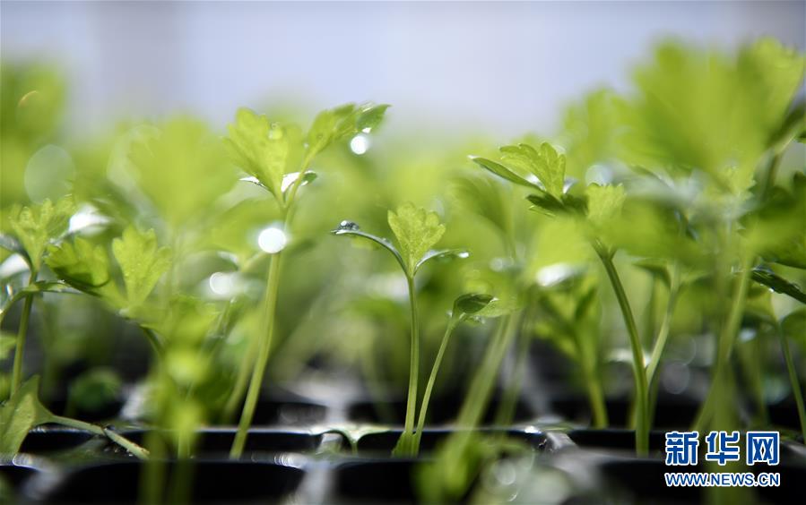 這是2月22日在寧夏銀川市賀蘭縣新平現代農業示范園區蔬菜育苗大棚里拍攝的芹菜幼苗。