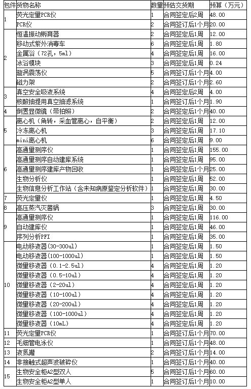 分析測試百科網(wǎng)訊 近日,上海市疾病預(yù)防控制中心發(fā)布了新冠防控緊急采購公告,為其所需的新冠防控緊急采購項目進(jìn)行公開采購。本次采購預(yù)算1030萬,涉及熒光定量PCR儀、高通量測序儀等,詳情如下:
