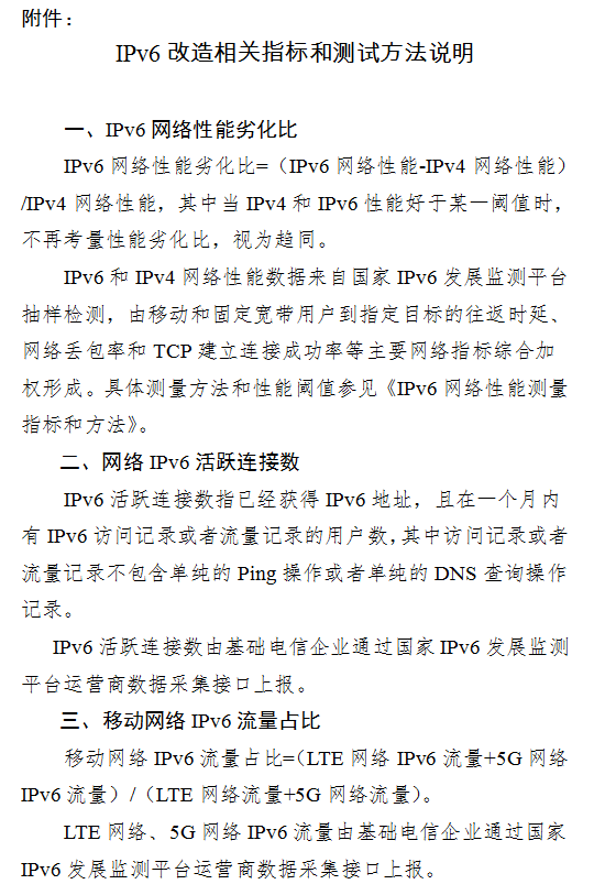 附件:IPv6改造相關(guān)指標(biāo)和測(cè)試方法說明