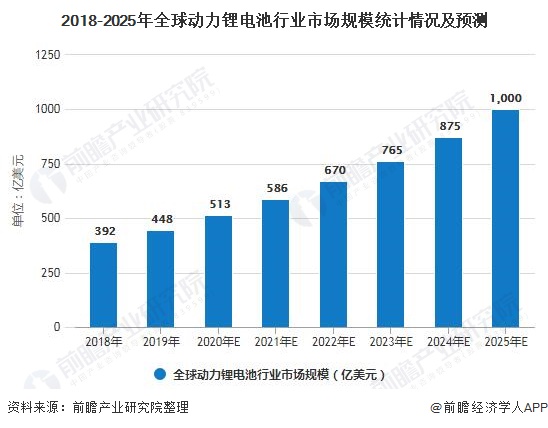 2018-2025年全球動力鋰電池行業市場規模統計情況及預測