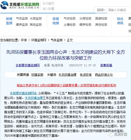 兩會期間,北極星環(huán)境監(jiān)測網特邀先河環(huán)保(股票代碼:300137)董事長李玉國通過網絡媒體向“兩會”建言獻策。報道發(fā)出后,立即引發(fā)廣泛關注。