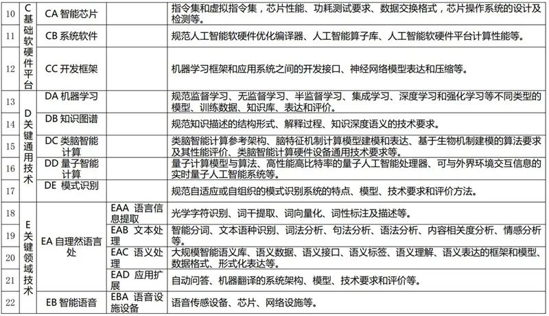 D 關鍵通用技術標準主要圍繞機器學習、 知識圖譜、 類腦智能計算、 量子智能計算、 模式識別等方面, 為人工智能應用提供通用技術支撐;