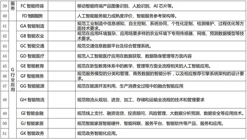 F 產品與服務標準包括在人工智能技術領域中形成的智能化產品及新服務模式的相關標準;