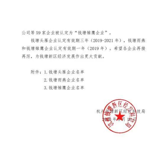 近日,杭州錢塘新區(qū)經(jīng)發(fā)科技局印發(fā)《關(guān)于公布錢塘新區(qū)頭雁、雨燕、雛鷹企業(yè)名單的通知》。根據(jù)通知內(nèi)容,杭州美儀自動化有限公司被認(rèn)定為“錢塘雨燕企業(yè)”。