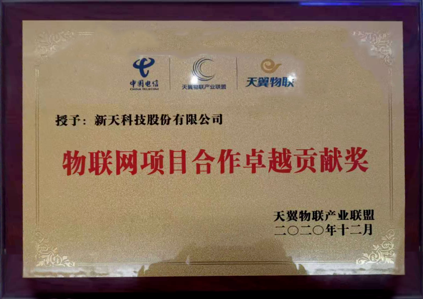作為智能表領域的龍頭企業,新天科技憑借過硬的產品實力和專業的NB-IoT整體解決方案,以及在物聯網領域的技術領先優勢在眾多聯盟伙伴中脫穎而出斬獲殊榮。該獎項代表了中國電信對新天科技在物聯網領域工作的肯定和信任!