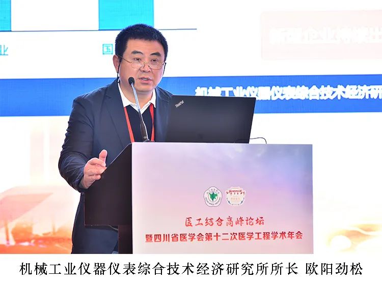 工業(yè)和信息化部科技司副司長(zhǎng)王衛(wèi)明、國(guó)家藥品監(jiān)督管理局醫(yī)療器械注冊(cè)管理司調(diào)研員程錦、四川大學(xué)副校長(zhǎng)張林、中華醫(yī)學(xué)會(huì)醫(yī)學(xué)工程分會(huì)主任委員李斌、四川大學(xué)華西醫(yī)院副院長(zhǎng)黃進(jìn)、四川省醫(yī)學(xué)工程專(zhuān)委會(huì)主任委員柏森等主管部門(mén)領(lǐng)導(dǎo)、醫(yī)工行業(yè)專(zhuān)家出席論壇,來(lái)自全國(guó)知名醫(yī)院、高校、科研院所、醫(yī)療裝備企業(yè)等單位代表300余人參加了會(huì)議。機(jī)械工業(yè)儀器儀表綜合技術(shù)經(jīng)濟(jì)研究所(以下簡(jiǎn)稱(chēng)儀綜所)所長(zhǎng)歐陽(yáng)勁松代表醫(yī)療裝備產(chǎn)業(yè)技術(shù)基礎(chǔ)公共服務(wù)平臺(tái)秘書(shū)處單位出席論壇。