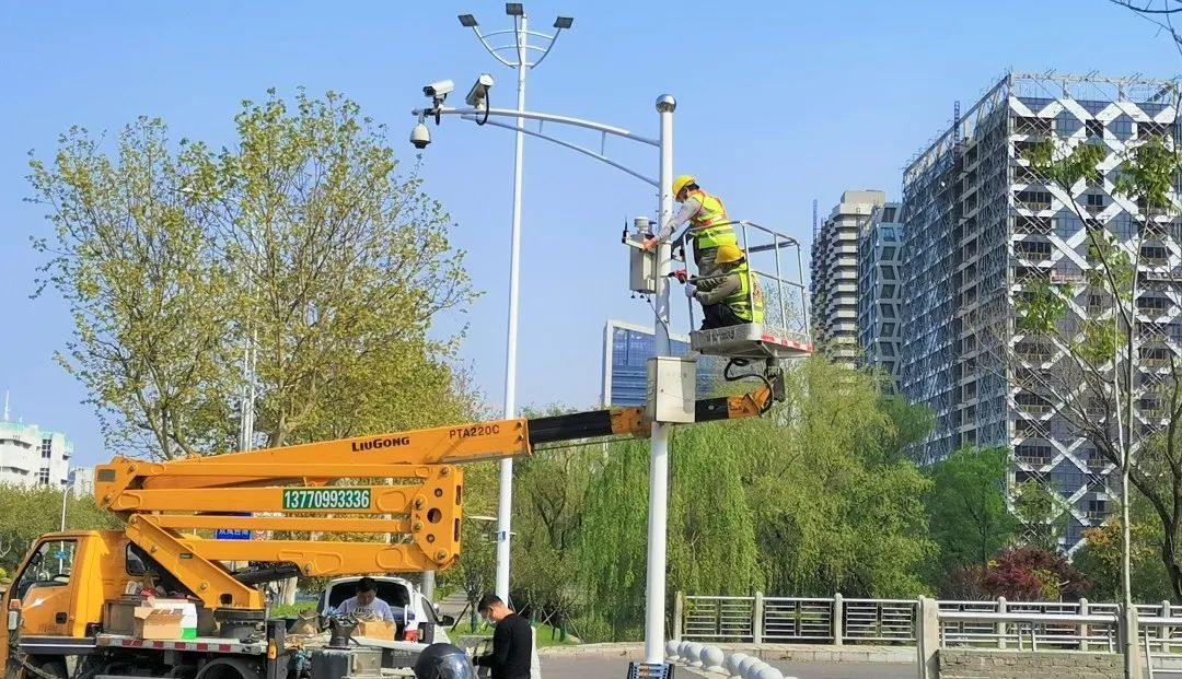 除了地面監控,調度平臺還接入了一個高空“鷹眼”——在位于南京市建鄴區江山大街的一個通信高塔上,架設在50米高空的360度高清攝像頭將周邊所有的工地納入視線。