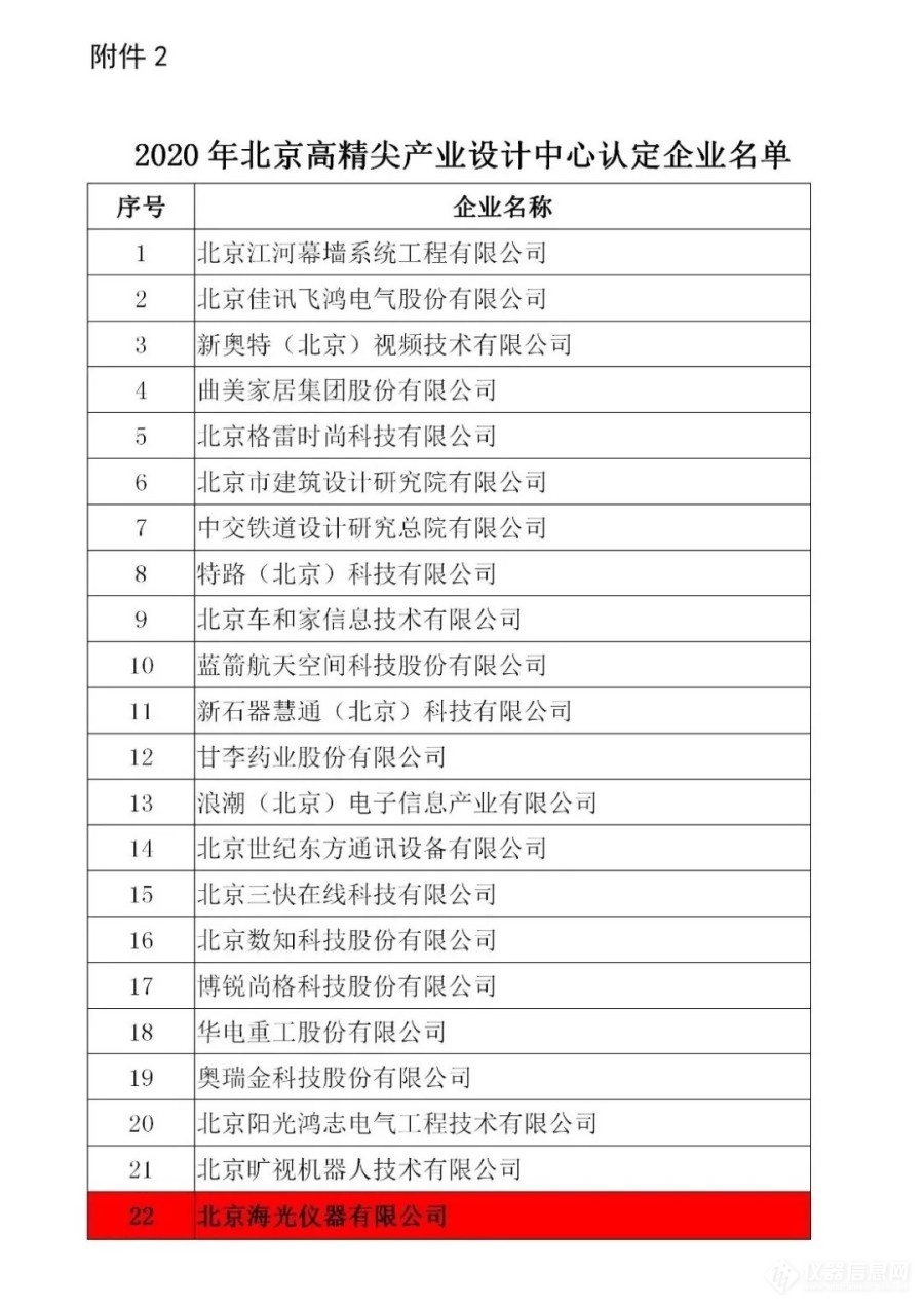 近日,北京市經(jīng)濟(jì)和信息化局公布了2020年北京高精尖產(chǎn)業(yè)設(shè)計(jì)中心認(rèn)定及復(fù)核結(jié)果,北京海光儀器有限公司(簡稱“海光公司”)榜上有名,被認(rèn)定為北京高精尖產(chǎn)業(yè)設(shè)計(jì)中心。