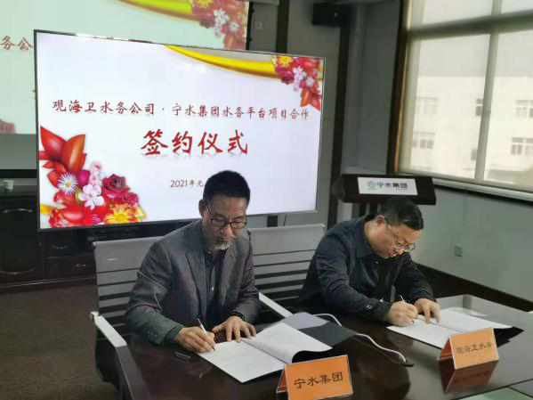 簽約當(dāng)日,觀海衛(wèi)水務(wù)公司董事長董建國親自帶隊(duì)到訪,雙方就合作事宜進(jìn)行商洽并簽訂正式合作協(xié)議。