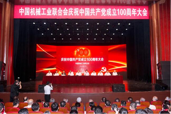 2021年6月27日,中國機(jī)械聯(lián)在京隆重召開慶祝中國共產(chǎn)黨成立100周年大會(huì)。會(huì)議主題是:學(xué)習(xí)黨史,表彰先進(jìn),抒發(fā)情懷,鼓舞斗志,為創(chuàng)新黨的建設(shè)、實(shí)現(xiàn)機(jī)械工業(yè)更好更快發(fā)展凝聚力量。國務(wù)院國資委協(xié)會(huì)黨建局副局長方長安蒞臨大會(huì)指導(dǎo)。中國機(jī)械聯(lián)黨委書記、會(huì)長王瑞祥,黨委副書記、執(zhí)行副會(huì)長薛一平,黨委常委、執(zhí)行副會(huì)長陳斌、于清笈、楊學(xué)桐、執(zhí)行副會(huì)長兼秘書長趙馳、執(zhí)行副會(huì)長宋曉剛、張克林,黨委副書記兼紀(jì)委書記趙文成,專家委副主任、特別顧問蔡惟慈,中國機(jī)械聯(lián)黨委委員、副會(huì)長,黨齡滿50年的黨員代表,受表彰的“兩優(yōu)一先”人員,各單位黨政領(lǐng)導(dǎo)班子成員,基層黨組織負(fù)責(zé)人,以及參加演出的干部職工、新聞?dòng)浾吖灿?jì)700余人參加大會(huì)。會(huì)議特邀機(jī)械離退休干部局局長李銀友、黨委書記鄭秉偉,機(jī)械機(jī)關(guān)服務(wù)中心主任于池、黨委書記周春節(jié)、副主任張毅等出席。